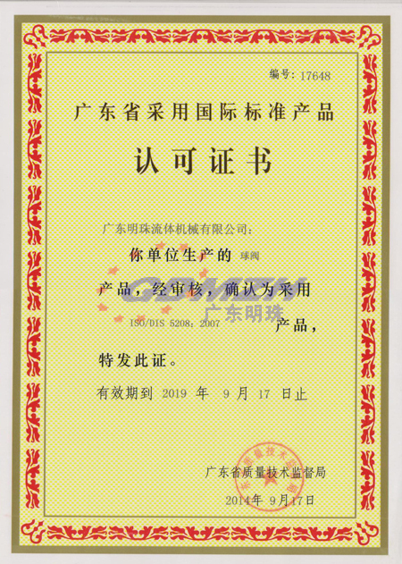 廣東省采用國際標準產品認可證書